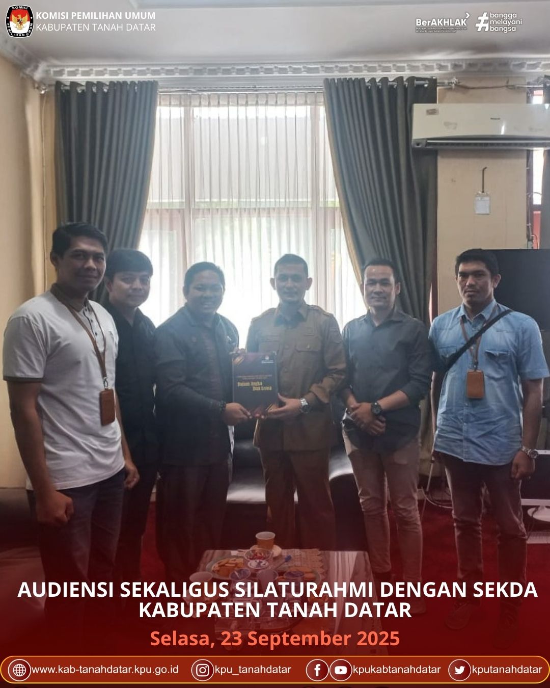 #temanpemilih# Batusangkar, Selasa, 23 September 2025, KPU Tanah Datar melaksanakan Audiensi sekaligus silaturahmi dengan Sekda Kabupaten Tanah Datar Abdurrahman Hadi, S.STP., M.Si di kantor Sekda KPU Tanah Datar.