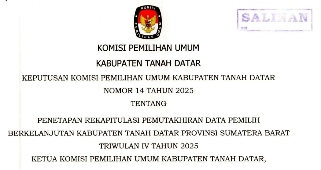 SK Rekapitulasi PDPB Kab. Tanah Datar Triwulan 4 tahun 2025 Selasa, 09 Desember 2025 09:34 103 Info Lebih Lanjut Dapat (KLIK DISINI) Bagikan: Dilihat 103 Kali.