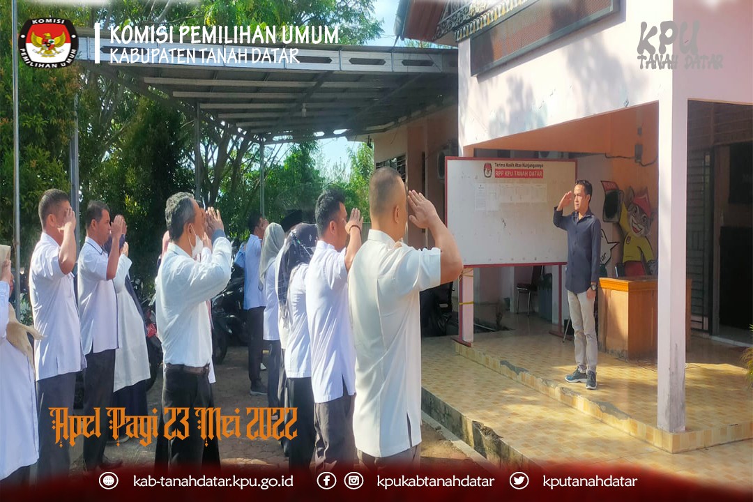 #Temanpemilih, Senin, 23 Mei 2022, KPU Kabupaten Tanah Datar kembali melaksanakan apel pagi. Kegiatan yang menjadi rutinitas dalam mengawali setiap minggu ini dihadiri oleh peserta dari jajaran komisoner dan sekretariat dan hadir Ketua Divisi Sosdiklih,Parmas dan SDM KPU Kabupaten Tanah Datar,Tomas Hendriko sebagai pembina apel. KPU Kabupaten Tanah Datar turut merasakan kehilangan dan berbelangsukawa atas berpulangnya salah satu punggawa demokrasi, almarhum Viryan, Anggota KPU RI periode 2017-2022. Untaian doa juga tak lupa dilafazkan untuk almarhum agar mendapat tempat terbaik di sisiNya.