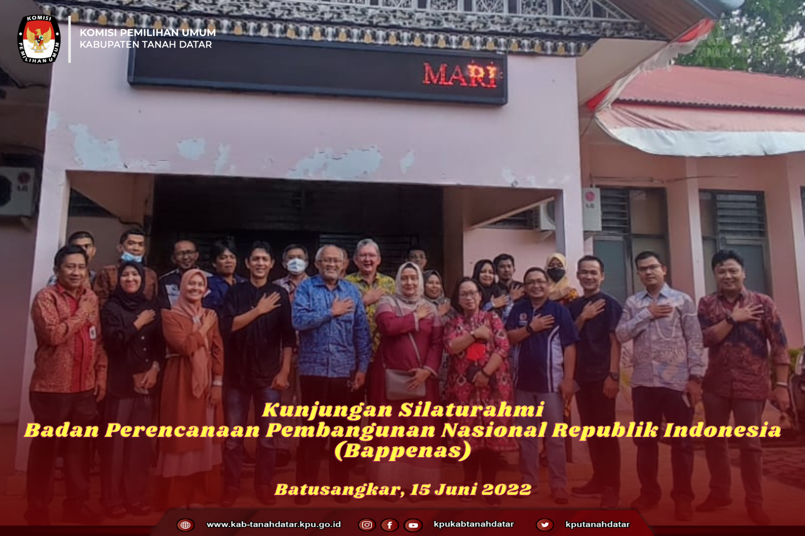 kab-tanahdatar.kpu.go.id - #temanpemilih, Jumat, 15 Juli 2022 ini menjadi momen bersejarah dan menjadi hari yang luar biasa bagi KPU Tanah Datar. Sore ini KPU Tanah Datar menerima kunjungan silaturahmi Badan Perencanaan Pembangunan Nasional Republik Indonesia (Bappenas) yang diwakili oleh plt. Direktur Politik dan Komunikasi Drs. Wariki Sutikno, MCP beserta rombongan. Hadir juga bersama tim, Biro Perencanaan dan Organisasi KPU RI bapak Markus Krisdiono. Kedatangan tamu nasional ini disambut hangat Ketua, Anggota KPU, Sekretaris dan seluruh jajaran Sekretariat KPU Tanah Datar. Beserta Ketua dan Anggota Bawaslu Tanah Datar. Diskusi berlangsung di aula KPU Tanah Datar.