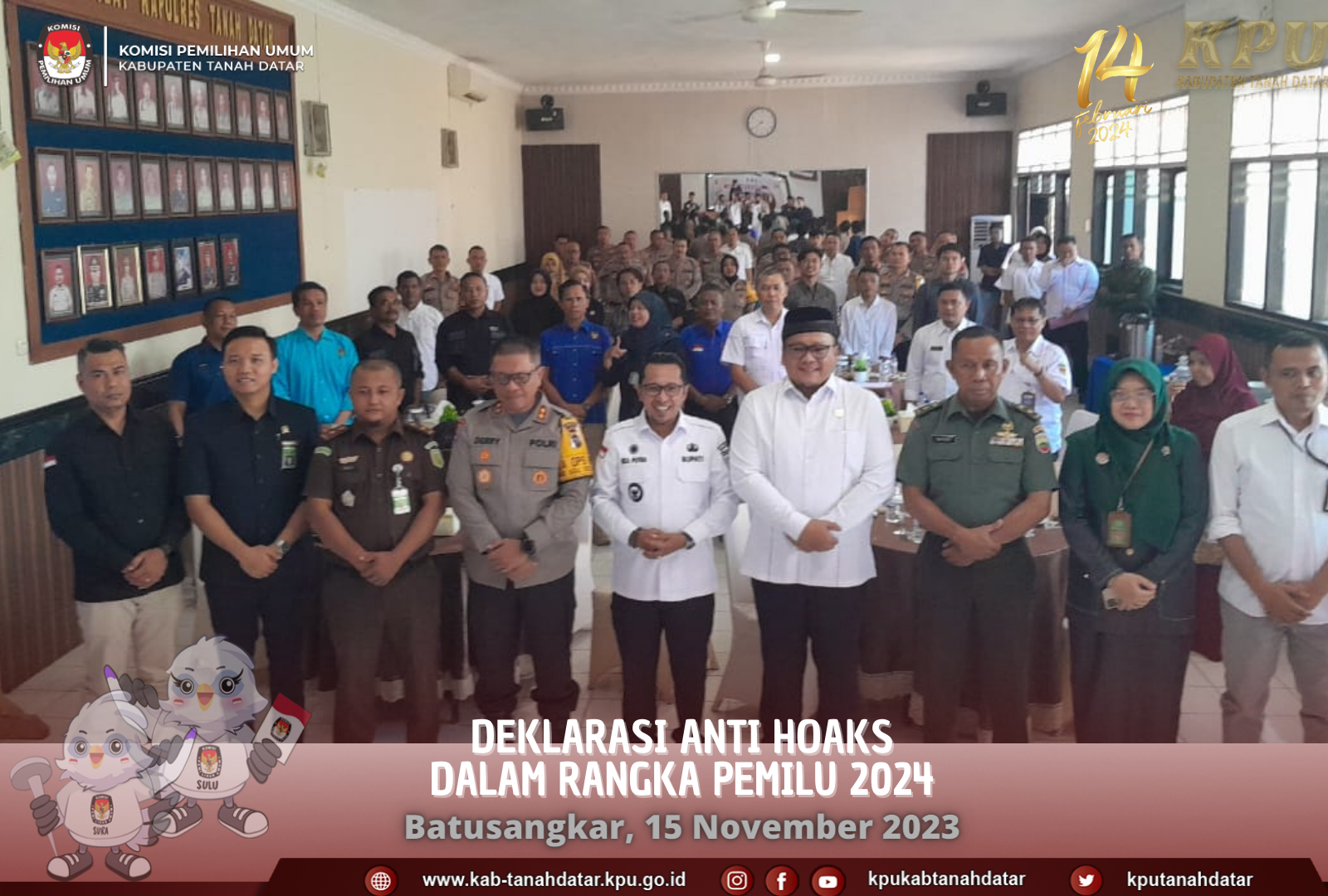 Sementara itu, Kapolres Tanah Datar AKBP Derry Indra mengatakan deklarasi ini sebagai antisipasi penyebaran berita hoaks di wilayah hukum Kabupaten Tanah Datar terutama saat masa tahapan Pemilu tahun 2024.