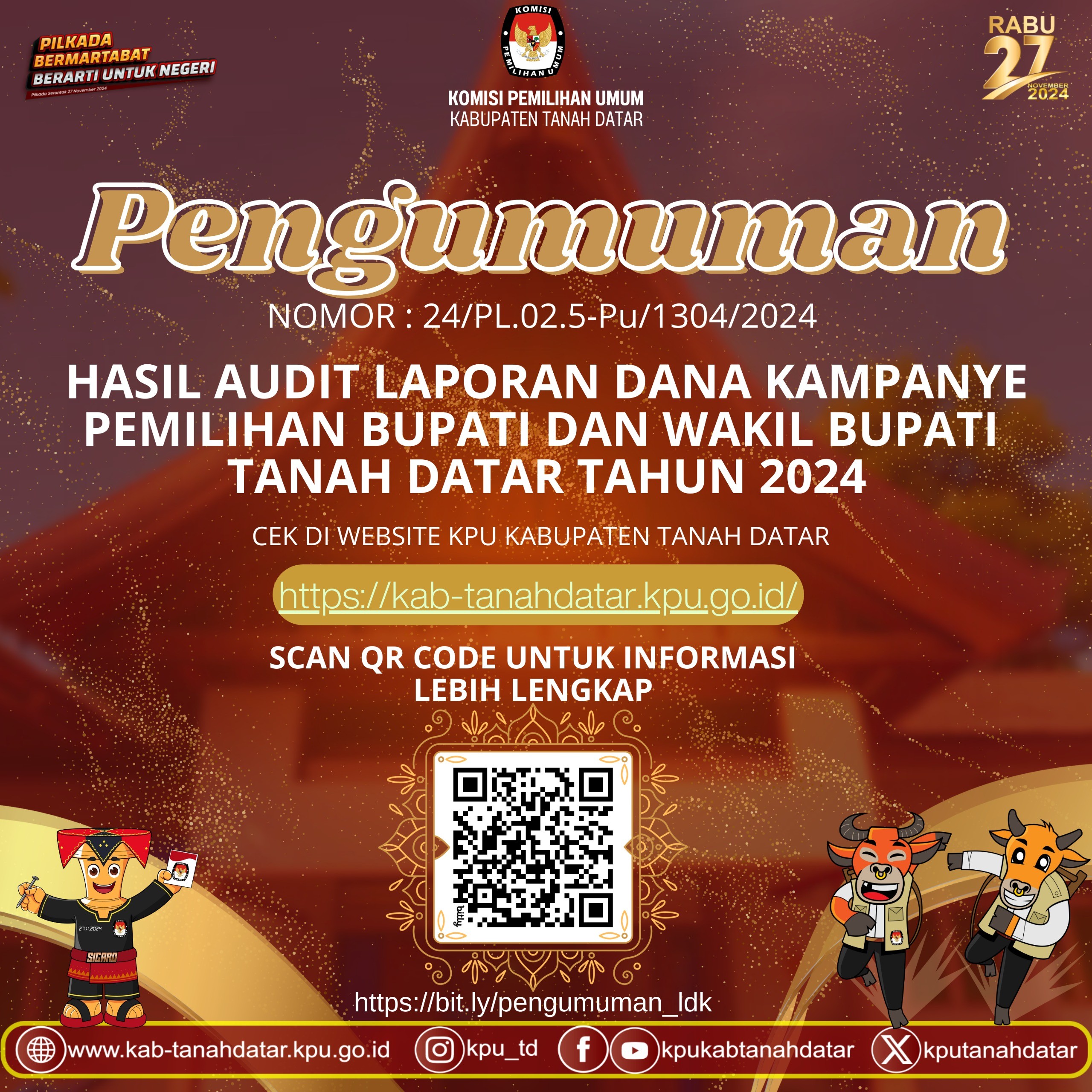 HASIL AUDIT LAPORAN DANA KAMPANYE PEMILIHAN BUPATI DAN WAKIL BUPATI TANAH DATAR TAHUN 2024