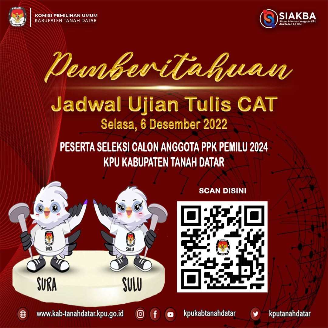 Berikut ini kami umumkan Jadwal Ujian Tertulis (CAT) Calon Anggota PPK Pemilu 2024