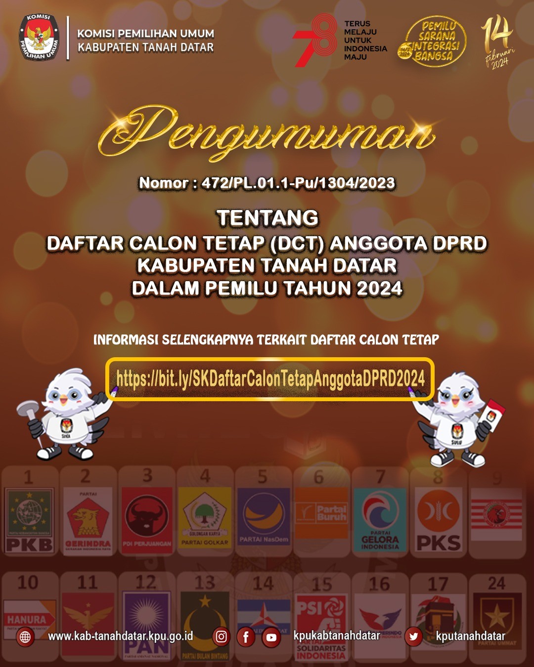 Pengumuman DCT Kabupaten Tanah Datar Pemilu 2024: DPRD 411 Calon