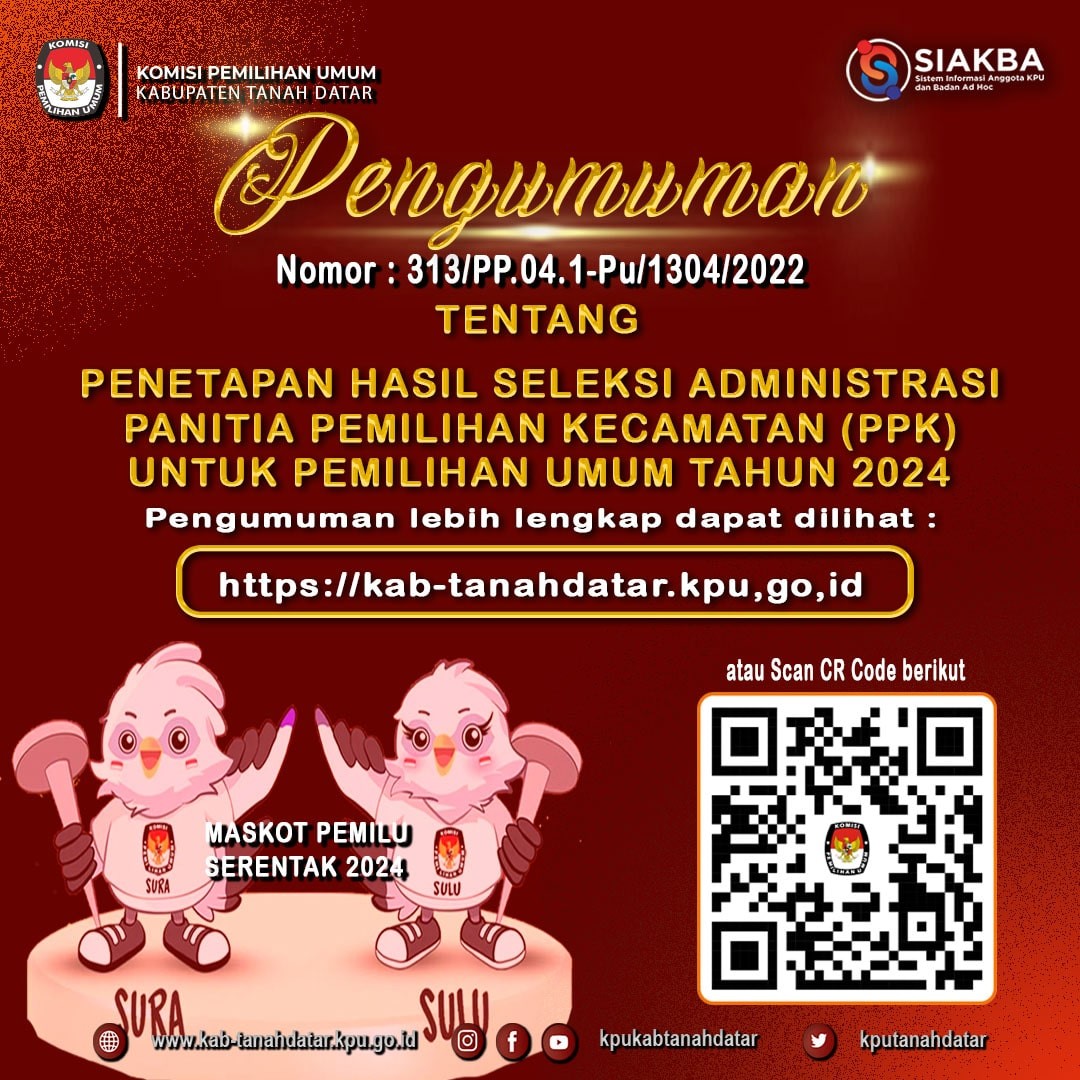 PENGUMUMAN HASIL SELEKSI ADMINISTRASI PPK PEMILU TAHUN 2024