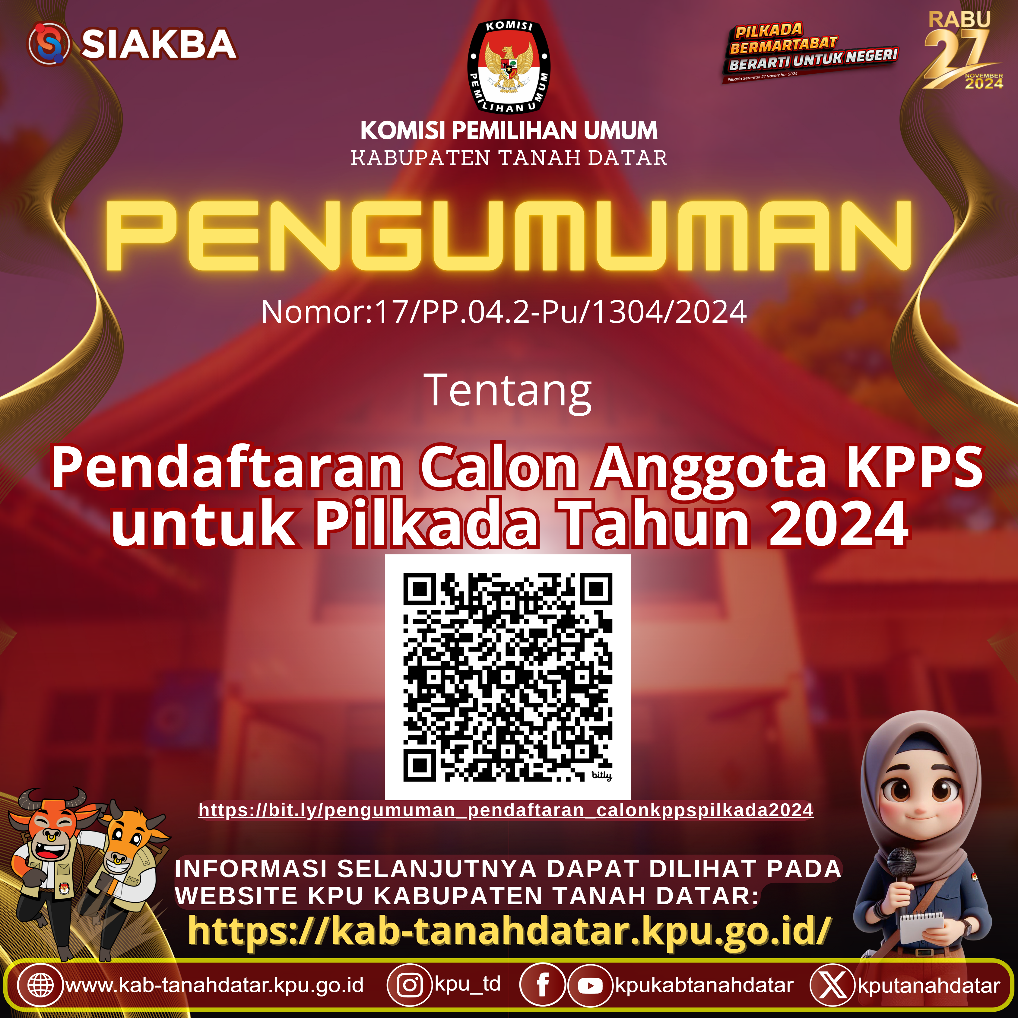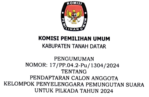 Pengumuman Pendaftaran Calon Anggota KPPS Selasa, 17 September 2024 07:00 128 Pengumuman Selengkapnya dapat dilihat disini Format Persyaratan Dapat didownload dibawah ini: Daftar Riwayat Hidup Download Surat Pendaftaran Download Surat Pernyataan Downlaod Bagikan: Dilihat 128 Kali.