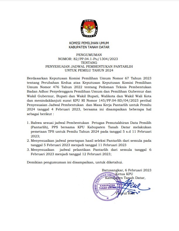 PENYESUIAN JADWAL PEMBENTUKAN PANTARLIH