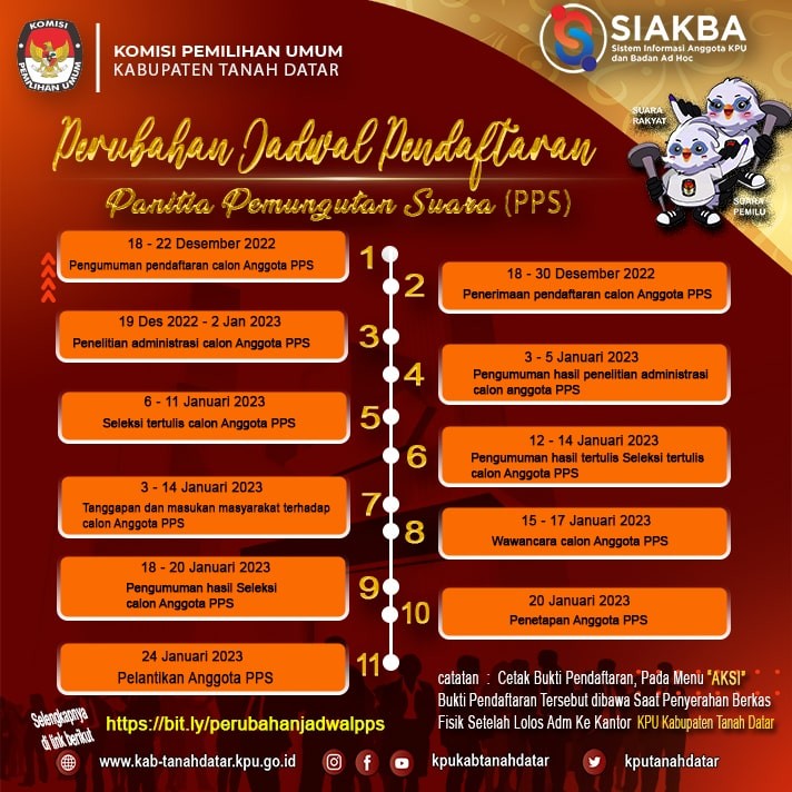PENGUMUMAN PERUBAHAN JADWAL PENDAFTARAN SELEKSI CALON ANGGOTA PANITIA PEMUNGUTAN SUARA (PPS) UNTUK PEMILIHAN UMUM TAHUN 2024