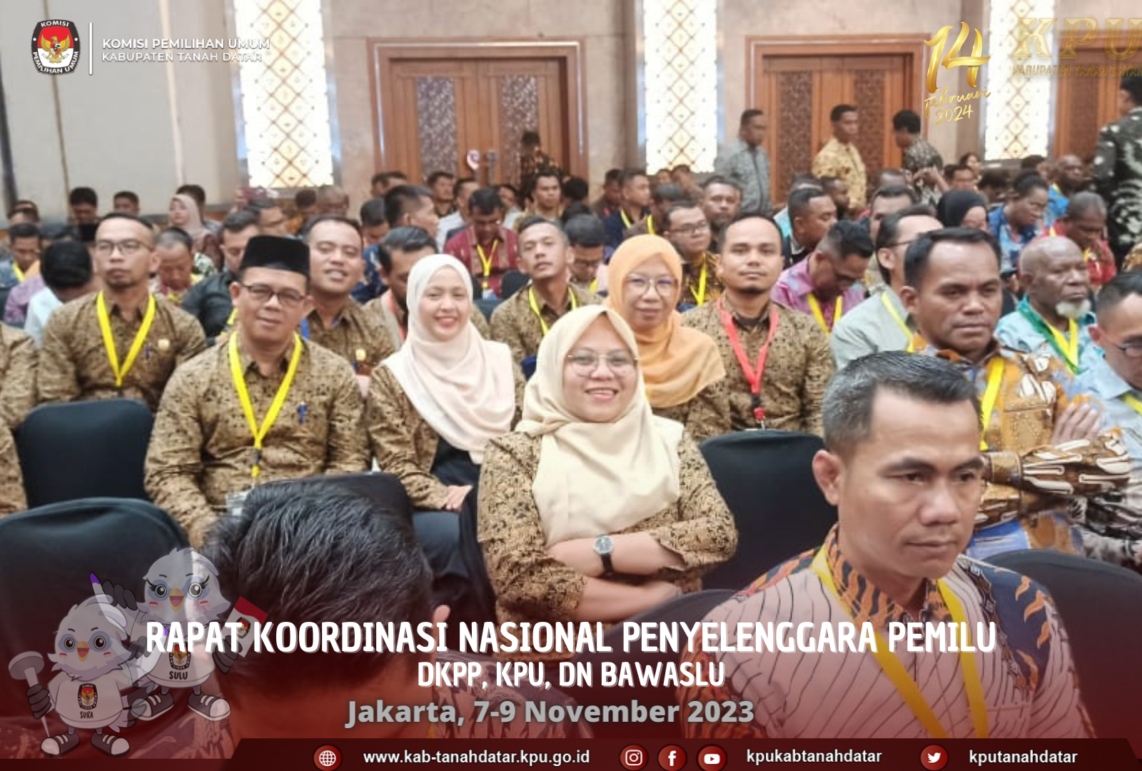 Batusangkar, -KPU Tnaha Datar menghadiri Pelantikan Tim Pemeriksa Daerah (TPD) Periode 2023-2024 sekaligus Rapat Koordinasi Nasional Penyelenggara Pemilu di Grand Sahid Hotel, Jakarta pada tanggal 7-8 November 2023. Kegiatan tersebut diselenggarakan oleh Dewan Kehormatan Penyelenggara Pemilu (DKPP) RI dan menghadirkan seluruh penyelenggara Pemilu di seluruh Indonesia, baik dari KPU maupun Bawaslu. KPU Tanah Datar dalam hal ini diwakili oleh Nini Karlina selaku Ketua Divisi Hukum dan Pengawasan.