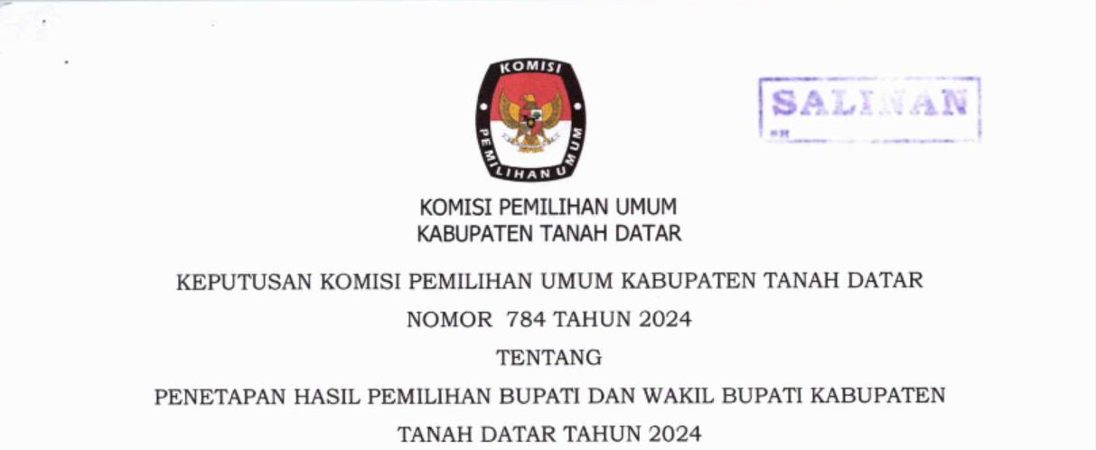 Salinan SK Perolehan Hasil Penghitungan suara + D hasil dapat di download disini
