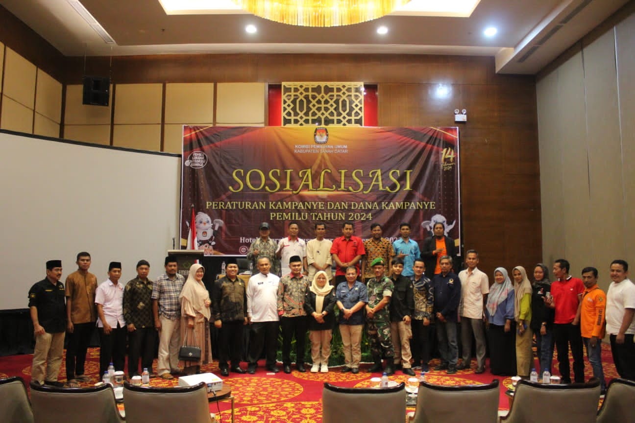 Batusangkar, Pada Jum’at / 22 September 2023 KPU Kabupaten Tanah Datar melaksanakan kegiatan sosialisasi aturan Pemilu terkait tahapan yang akan masuk pada tanggal 28 November mendatang, yakni tahapan Kampanye. Untuk persiapan memasuki tahapan tersebut KPU Tanah Datar berkoordinasi dengan Peserta Pemilu, Stakeholder terkait, juga beserta Bawaslu selaku Pengawas Pemilu. Acara tersebut diselenggarakan di Hotel Emersia- Batusangkar.