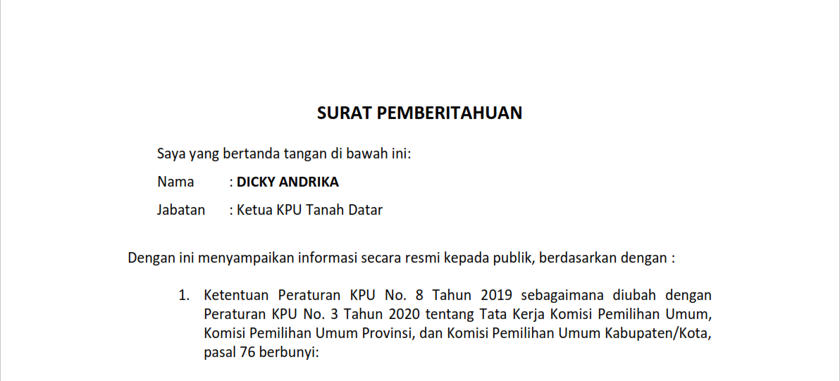 SURAT PERNYATAAN KETUA KPU TANAH DATAR